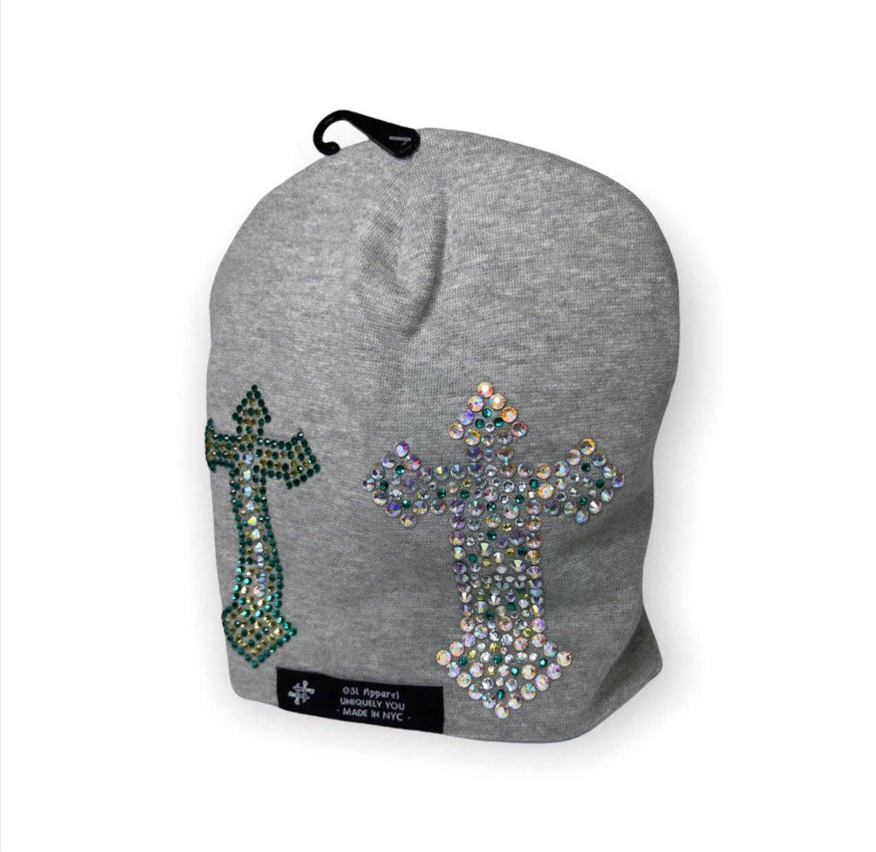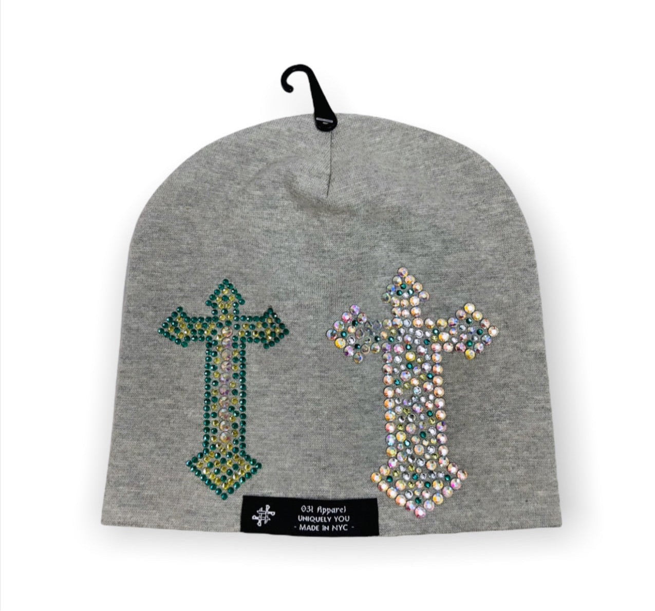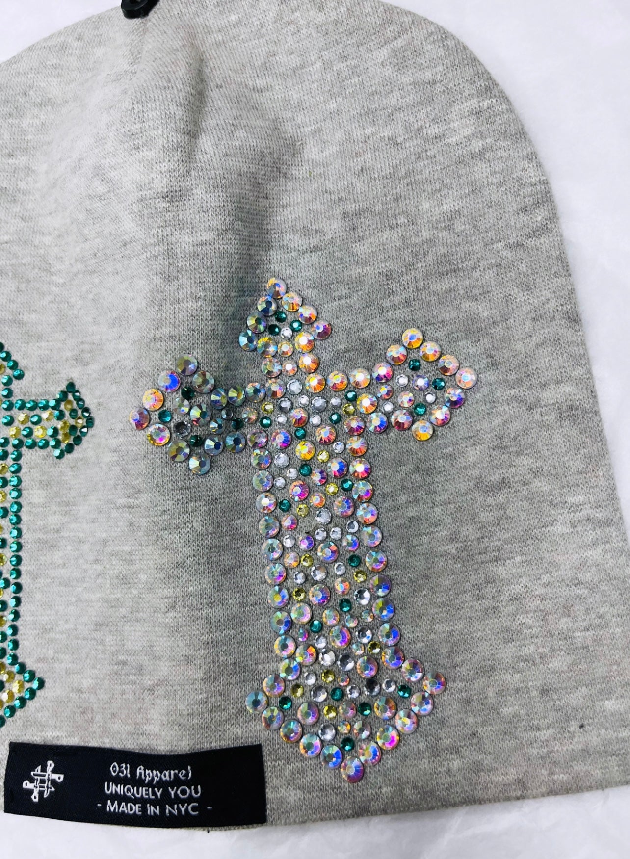 Rhinestones sustainably applied to stay on long term. This 1/1 beanie is snug fitting, handmade and should be washed in COLD WATER ONLY.