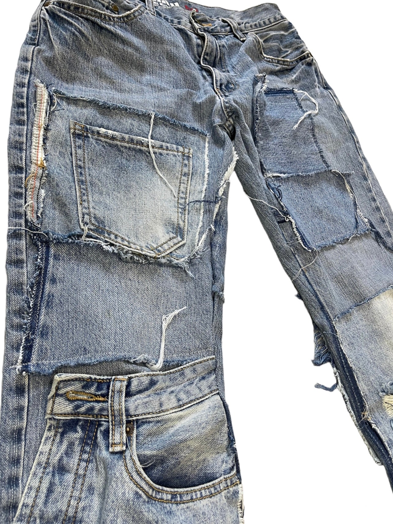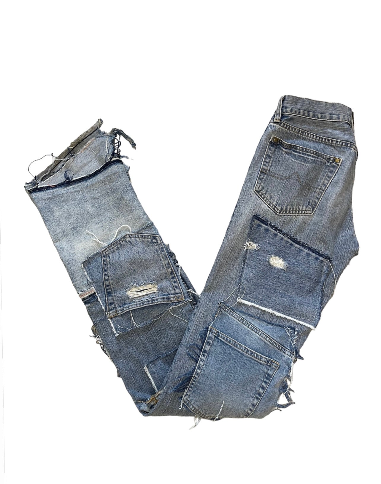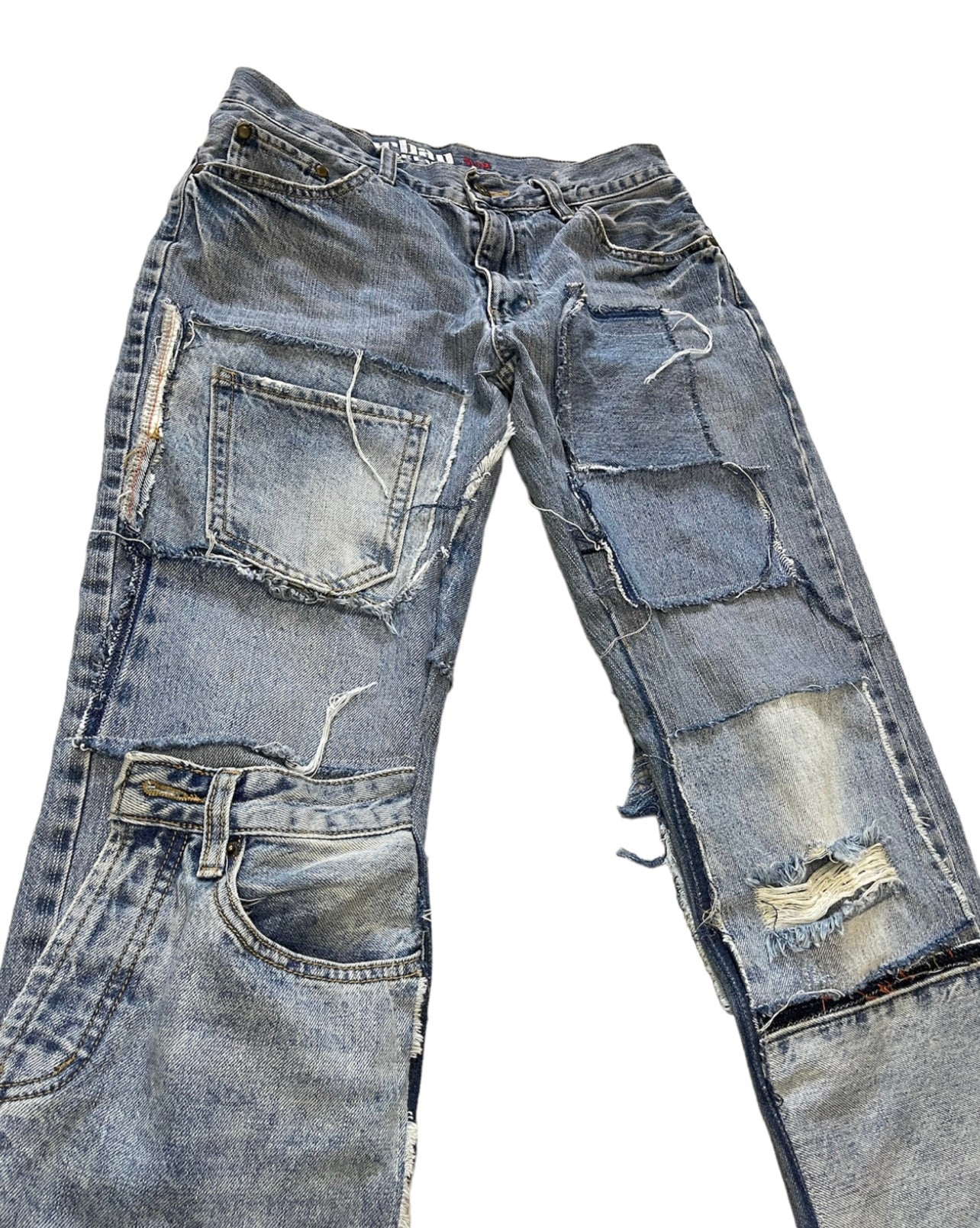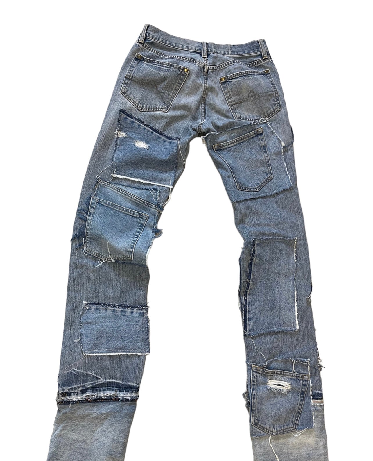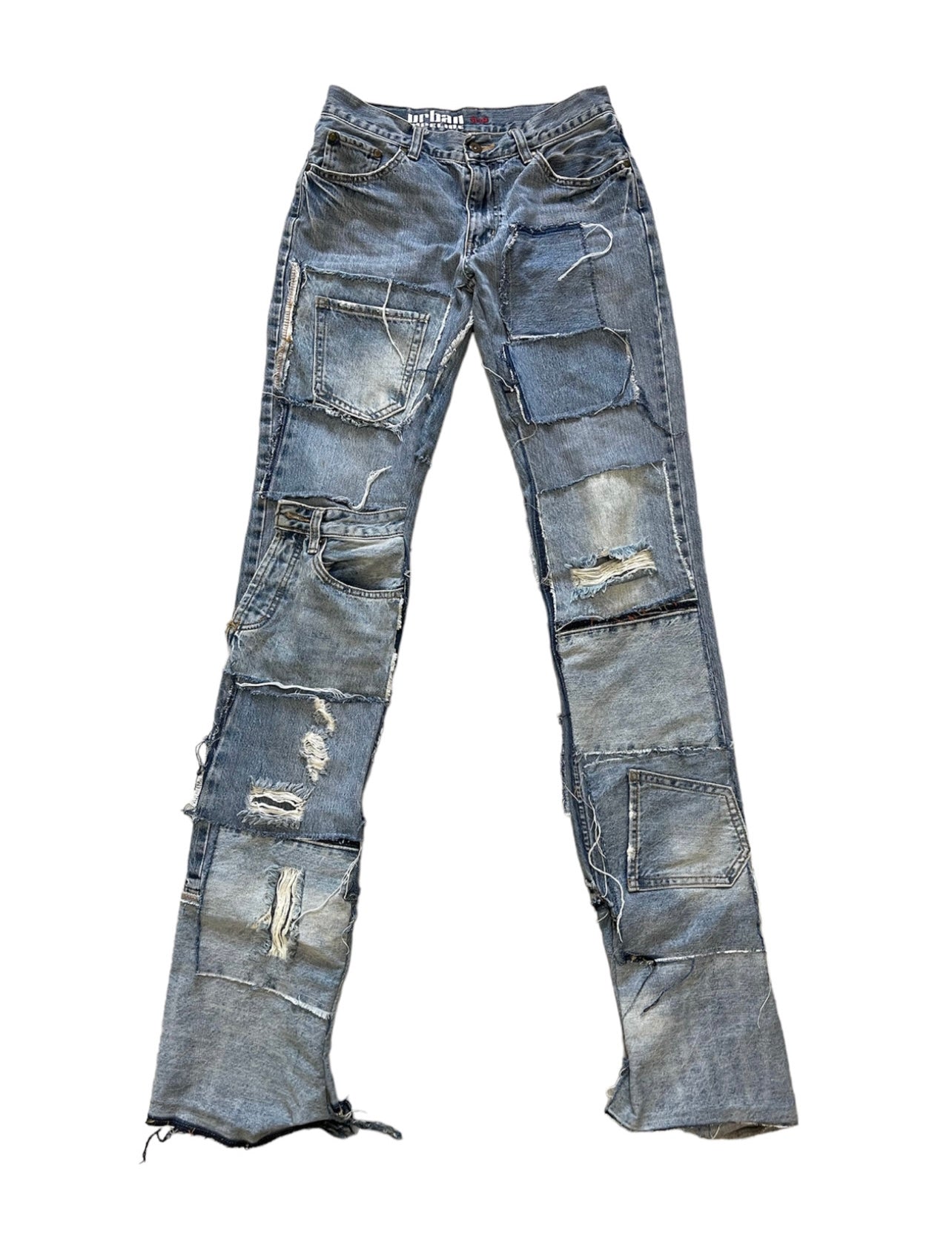 Our trendy, 1 of 1 raw hem stacked denim jeans were handmade in New York City. They offer a very comfortable fit and are very stylish.
