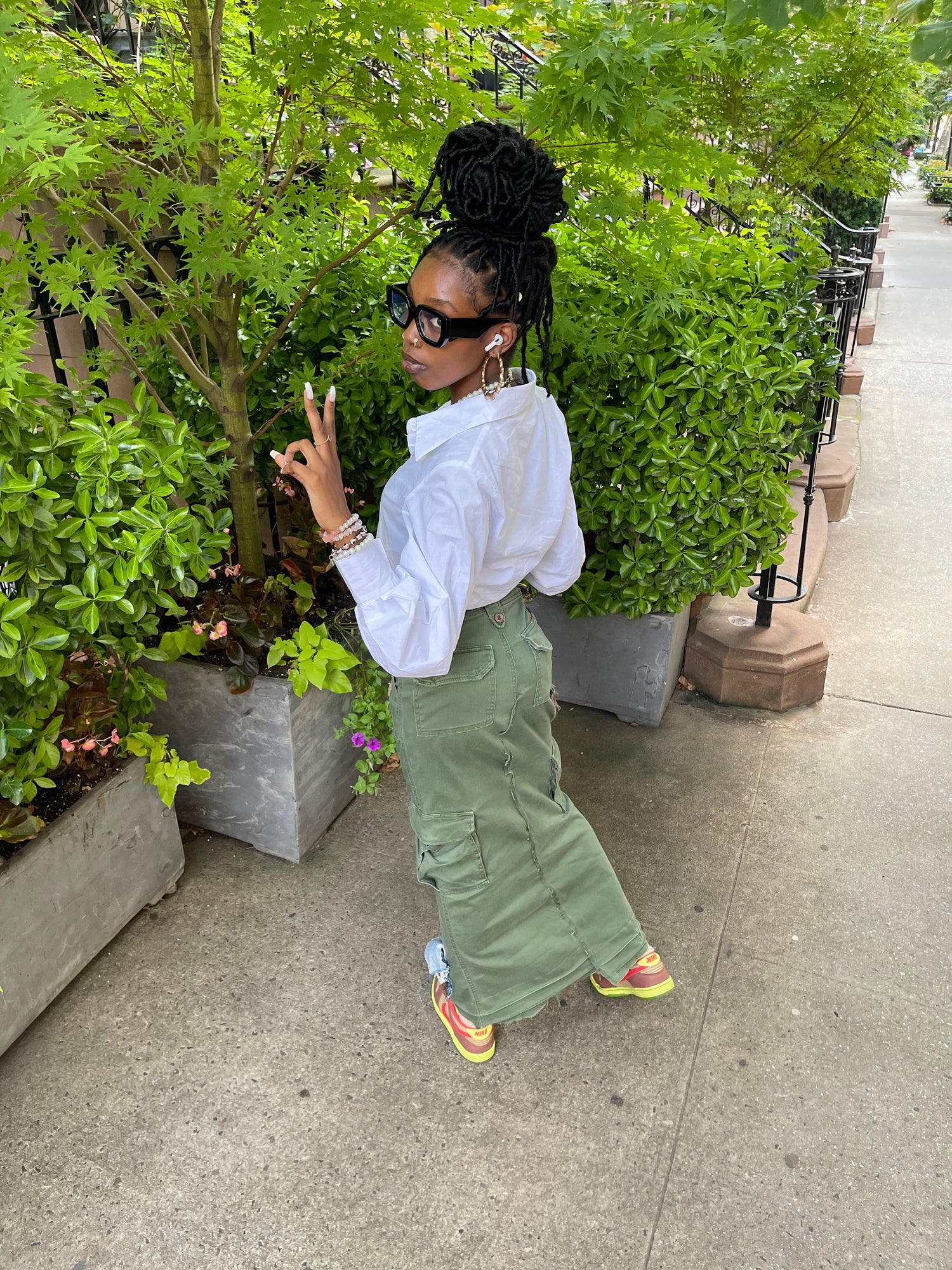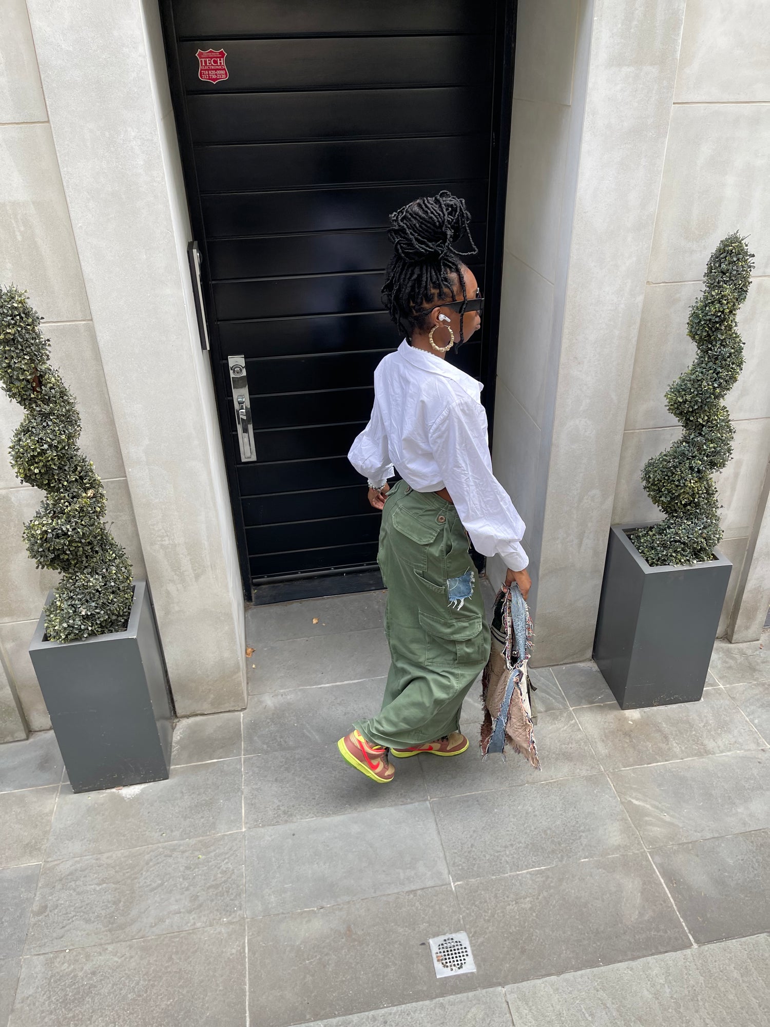 This reworked cargo shirt was made from a vintage pair of discarded bell bottom cargo pants. It’s hard wearing fabric was ruggedly stitched to give it more of a trendy grunge look.