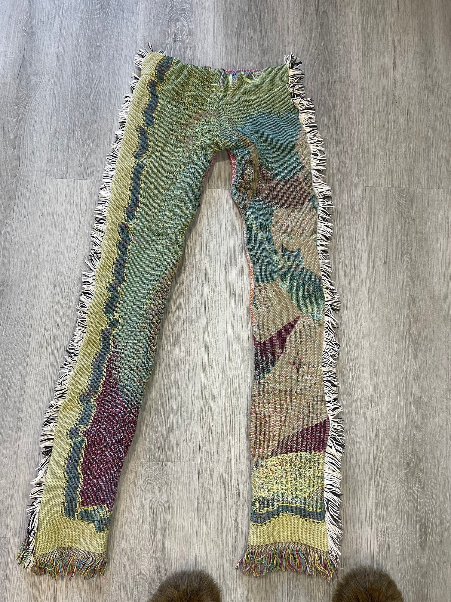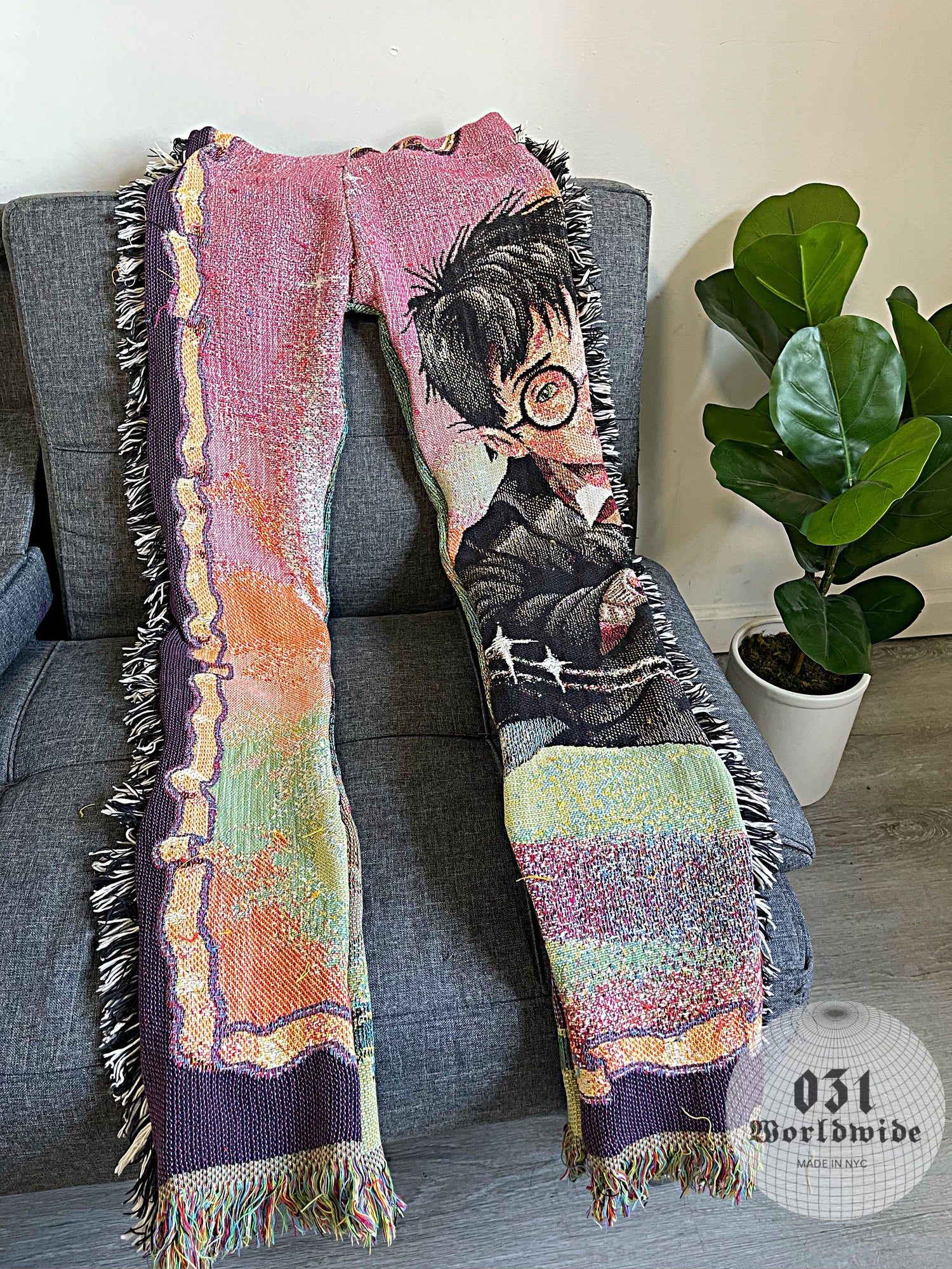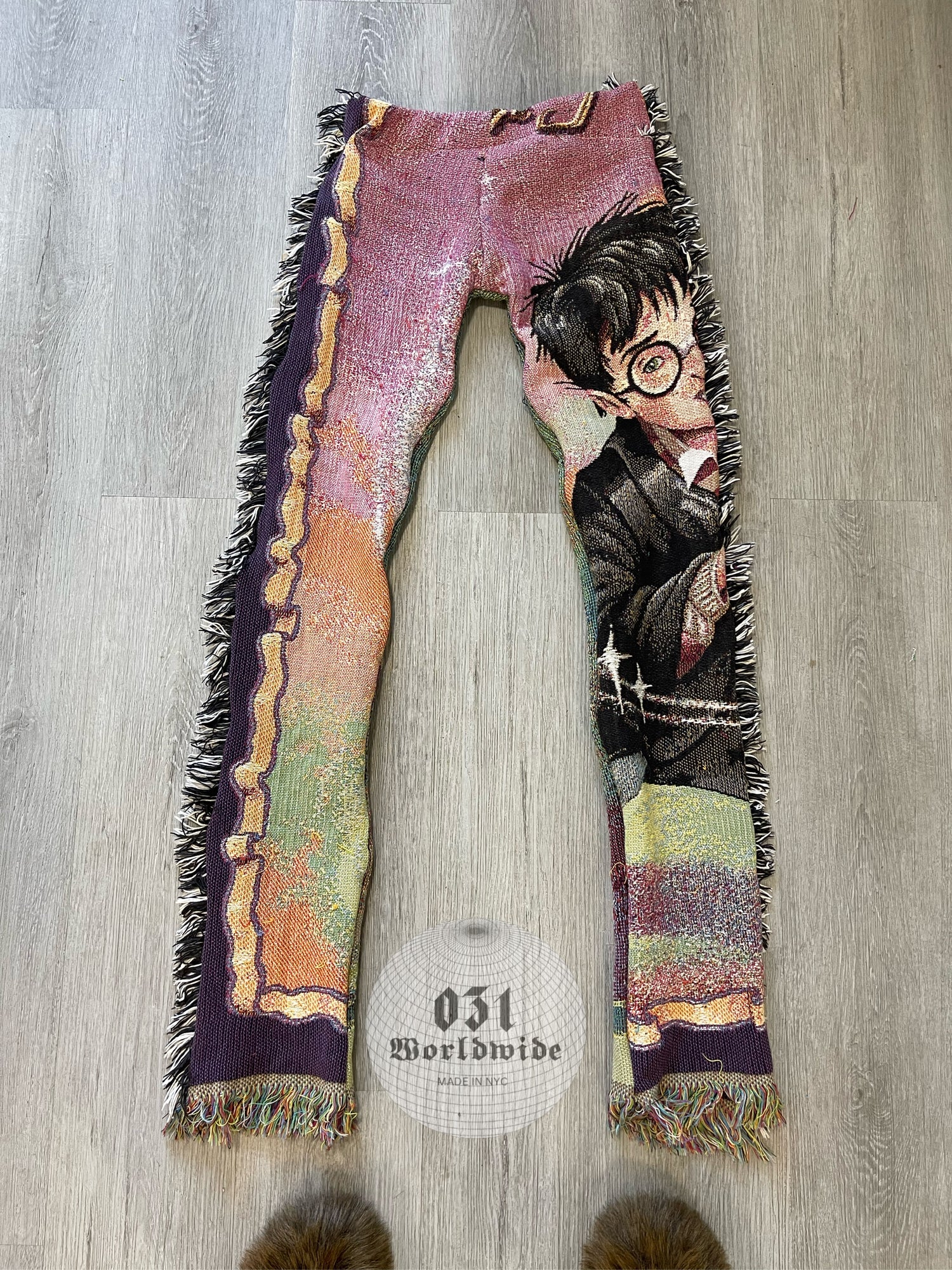 Our 1of1 Harry Potter tapestry pants, also known as “the blanket pants,” were hand sewn using woven tapestry fabric. These pants are a size small & are TRUE TO SIZE.